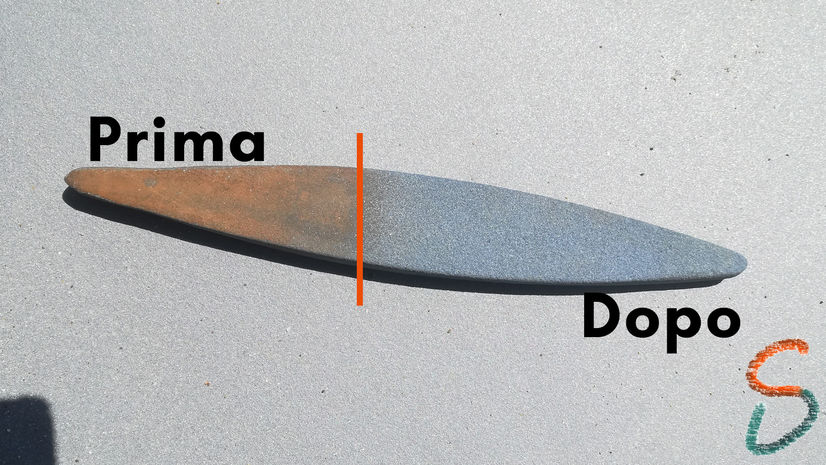 Questa operazione rimuove la ruggine e prepara l'oggetto per la verniciatura in modo da poter raggiungere un livello alto di qualità finale nel restauro.